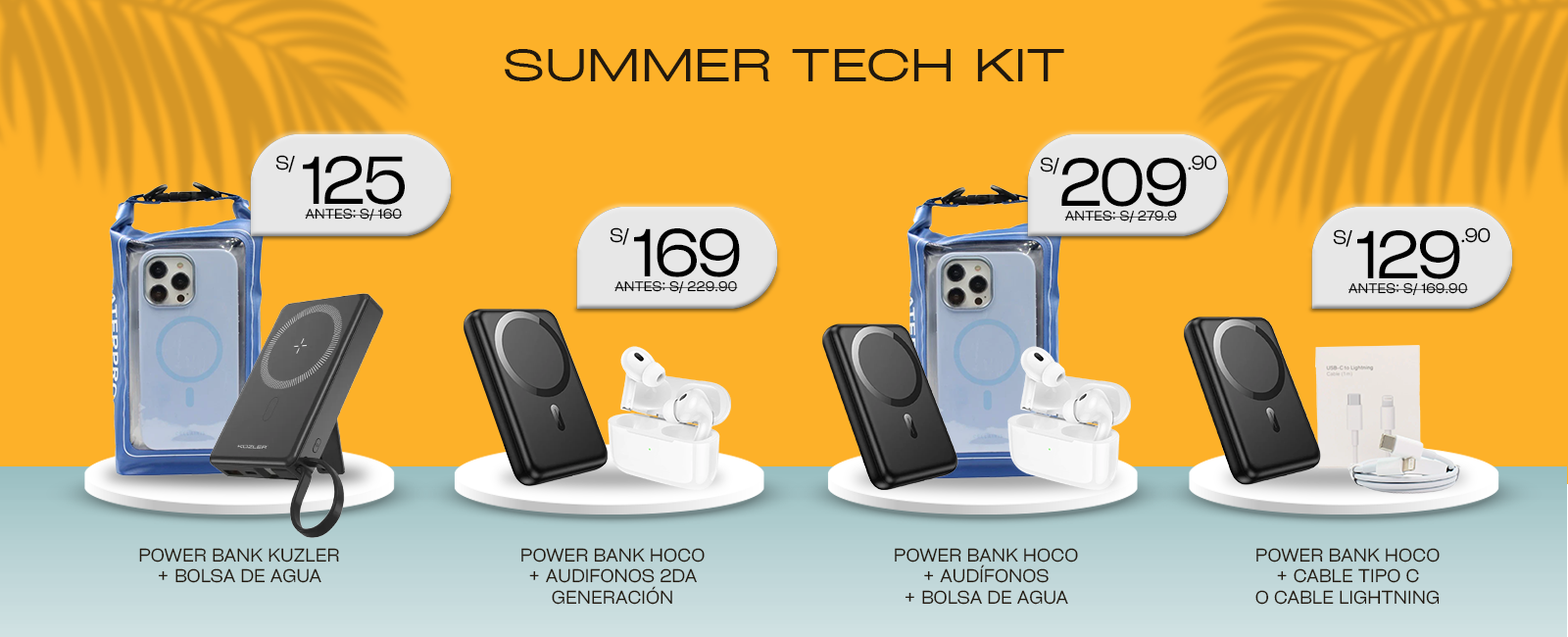 POWER BANK HOCO + AUDÍFONOS + BOLSA DE AGUA