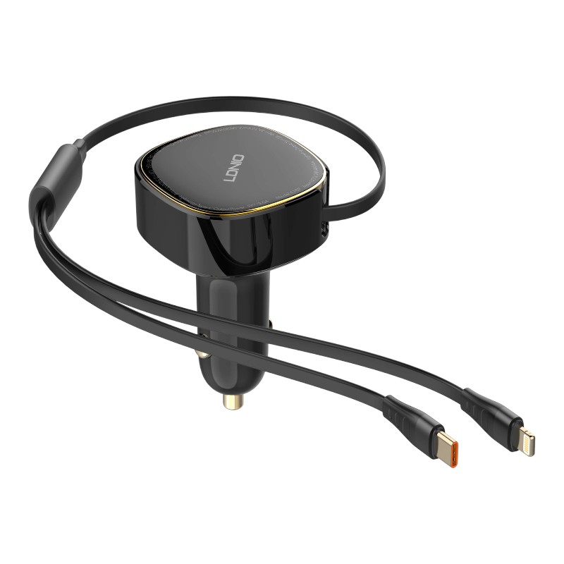 CARGADOR DE AUTO LDNIO C107 CON CABLE RETRACTABLE 30W NEGRO