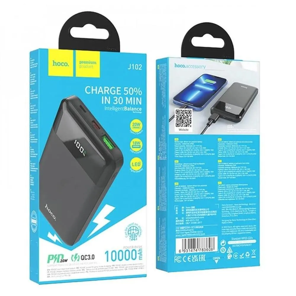 Power Bank Hoco J102 Cargador Portatil 10000 mAh 20w NEGRO