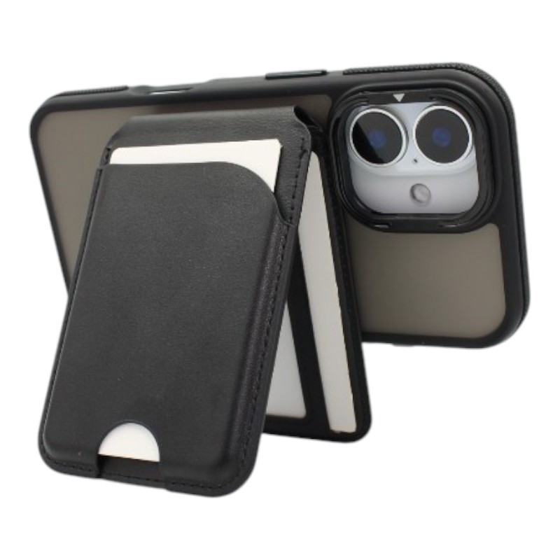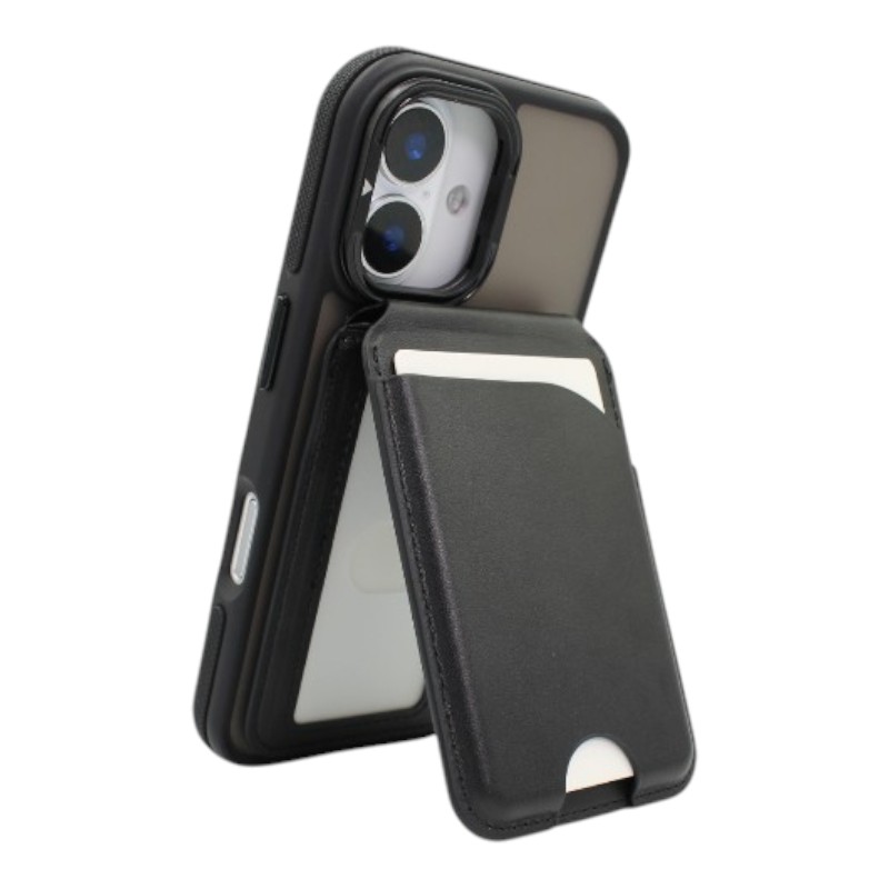 El tarjetero magnético versátil también está diseñado para usarse como soporte resistente y duradero para tu iPhone.
